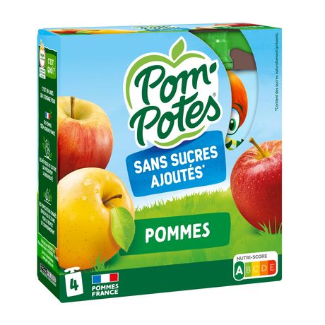 POM'POTES® Sans Sucres Ajoutés*, c'est le goûter à emporter partout, élaboré à partir de pommes origine France issues de Vergers écoresponsables. Chez POM'POTES®, on s'engage pour le bien-être et le plaisir des petits et des grands dégourdis ! Chacune de nos gourdes est sans sucres ajoutés* et correspond à 1 des 5 portions de fruits et légumes recommandées quotidiennement. * Contient des sucres naturellement présents.