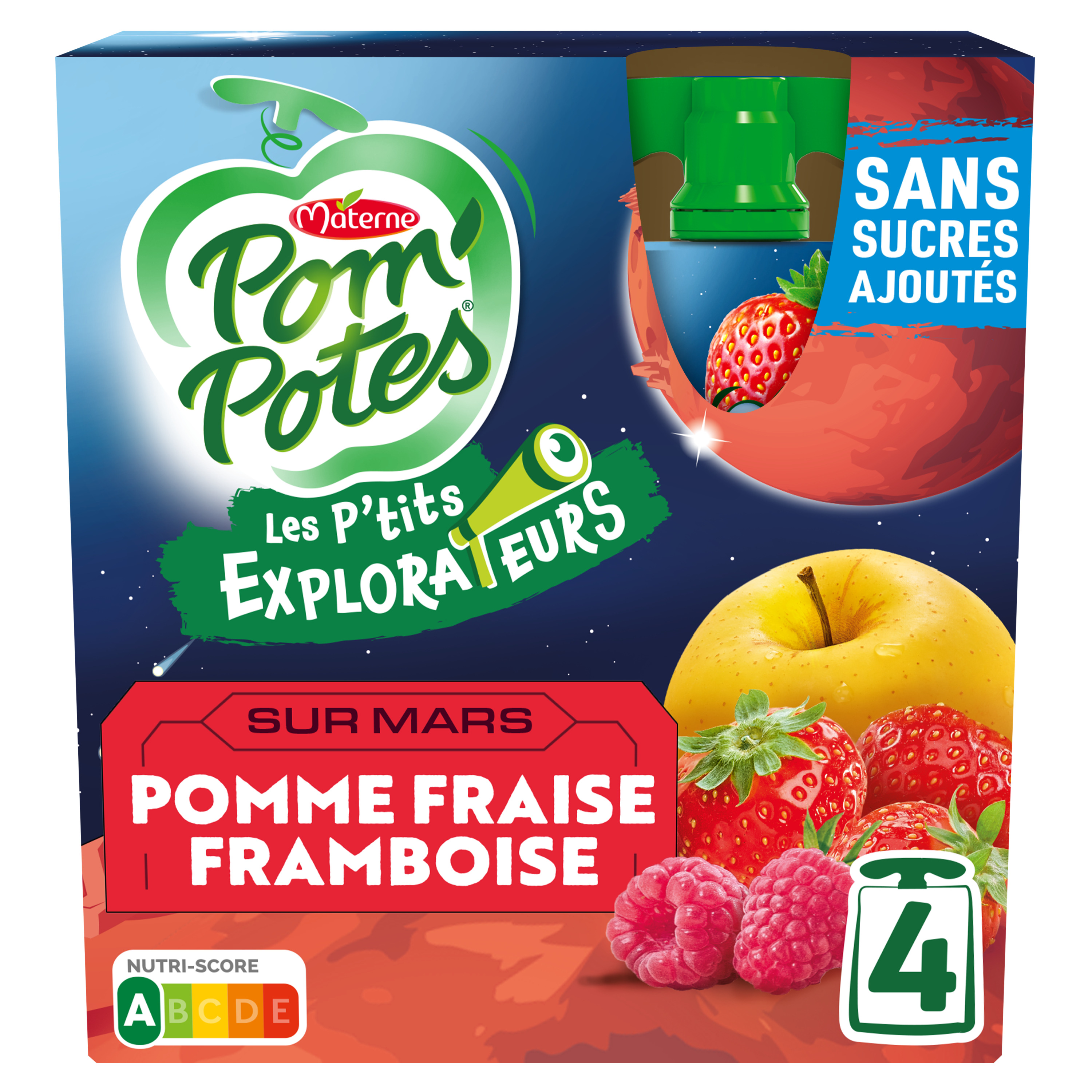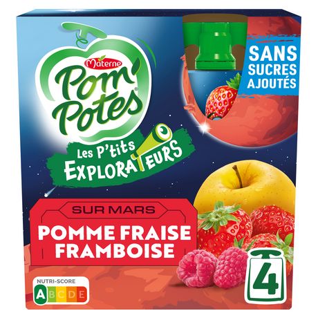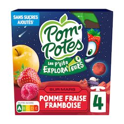 Découvrez Pom'Potes® Les P'tits Explorateurs dans l'espace, une gamme amusante et éducative de compotes en gourdes qui éveillera la curiosité de vos enfants avec : - Des recettes gourmandes avec des fruits de la même couleur que les planètes du système solaire - Un emballage ludique et éducatif : une exploration de l'espace à travers des jeux et anecdotes amusants Pom'Potes® Les P'tits Explorateurs, c'est aussi : • Des recettes sans sucres ajoutés* • Nutri-Score A • Une gourde Pom'Potes® correspond à 1 des 5 portions de fruits et légumes recommandées quotidiennement * Contient des sucres naturellement présents