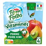 Pomme origine France 79,7 %, poire 15,0 %, kiwi 5,0 %, jus de citron concentré (si nécessaire pour réguler l'acidité), arômes naturels, vitamine C.