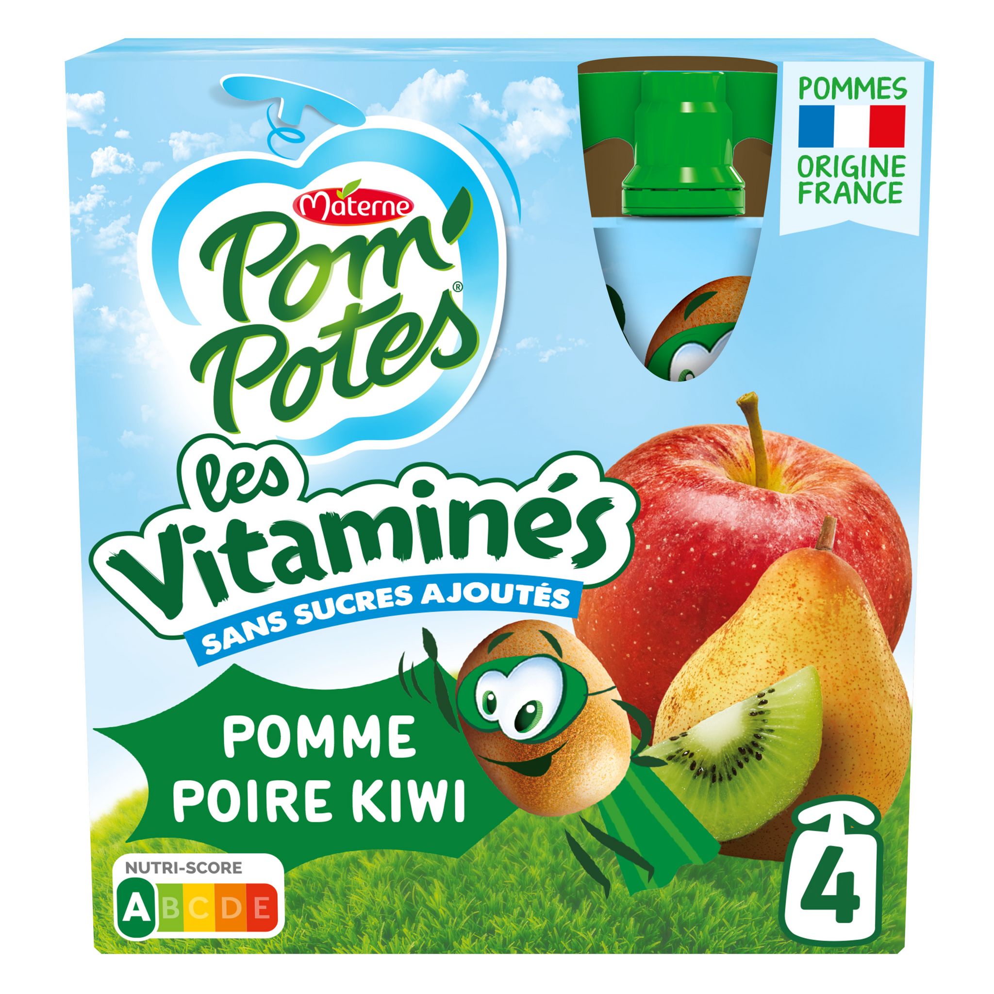 Découvrez Pom'Potes® Les Vitaminés, une nouvelle gamme de compotes en gourdes source de vitamines qui renforcera les apports nutritionnels de vos enfants au quotidien. Une recette source de vitamine C pour renforcer la vitalité des petits dégourdis, avec des fruits toujours aussi savoureux ! Pom'Potes® Les Vitaminés, c'est aussi : • Une recette source de vitamine C • Une recette sans sucres ajoutés* • Nutri-Score A • Une gourde Pom'Potes® correspond à 1 des 5 portions de fruits et légumes recommandées quotidiennement * Contient des sucres naturellement présents
