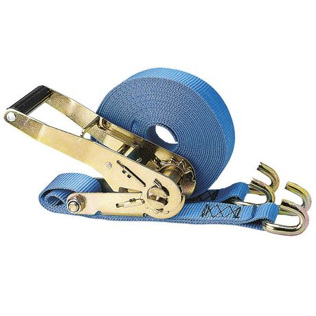 Sangle camion à cliquet. Élingues synthétiques avec deux crochets.Longueur 9 mètres environ. Résistance sanglée: 4 000 kg Résistance tractée: 2 000 kg.
