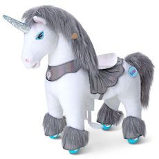 PonyCycle Poney gris à monter sur cheval licorne modèle avancé Y (hauteur de 73 cm pour enfants de 3 à 4 ans) Poney à monter avec roues, cadeau d'anniversaire réaliste pour enfants Poney Ride Y356