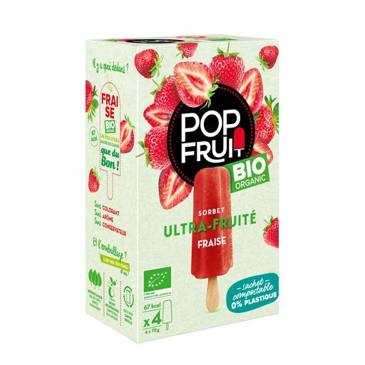 Bâtonnet glacé sorbet fraise bio ultra-fruité