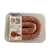 Ingrédients : Viande de porc IGP Sud Ouest, eau, sel (1%), arômes naturels, sel, dextrose, épices et plantes aromatiques, pour de vinaigre, saccharose, jus concentré d'acérola, boyau naturel