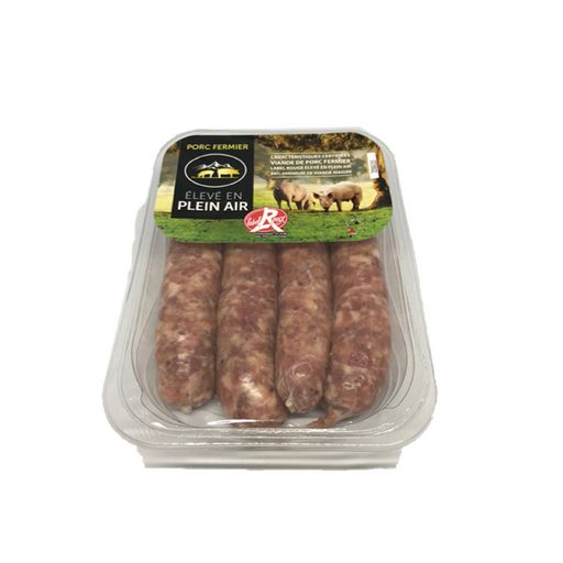 Ingrédients : Viande de porc fermier label rouge, eau, sel, vinaigre d'alcool poudre =, épices, arômes naturels, poivre, boyau naturel