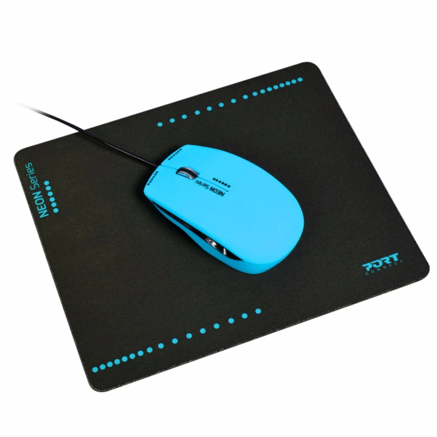 Souris filaire + tapis néon bleu 900530