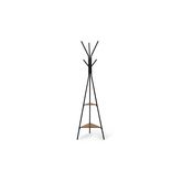 Dimensions globale : 50x50x180cm - Dimensions petite planche : 22x22x22 cm - Dimensions grande planche : 38x38x38 cm - Matère: métal et MDF - Coloris: noir et bois effet vieillit - A monter soi-même - Comporte 6 patères et 2 étagères - Visserie incluse - Tubes en métal diamètre 19mm et épaisseur 0.6mm