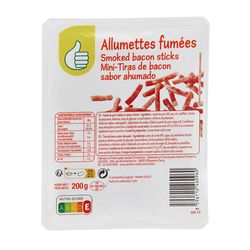 Ingrédients : Poitrine de porc 85%, eau, sel, conservateurs : lactate de potassium, nitrite de sodium dextrose, antioxydant : érythorbate de sodium. Fumés au bois de hêtre. Traces de moutarde. Elaboré à partir de porc origine France.