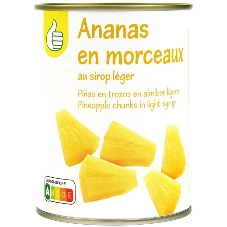 Ingrédients : Ananas, eau, sucre, acidifiant : acide citrique