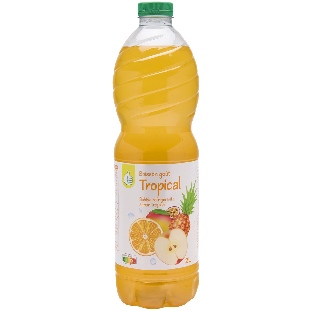 Ingrédients : Eau, sucre, jus de fruits à base deconcentrés 12% (pomme 9,8%, orange 1%, ananas 1%, mangue 0,1%, fruit de lapassion 0,1%), acidifiant : acide citrique, arômesnaturels, extrait de paprika, antioxydant : acide ascorbique, édulcorant :sucralose.
