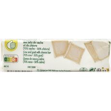 Ingrédients : lait de vache pasteurisé 70% (origine : UE), lait de chèvre pasteurisé 30% (origine : UE), sel, ferments lactiques et d'affinage, coagulant microbien.