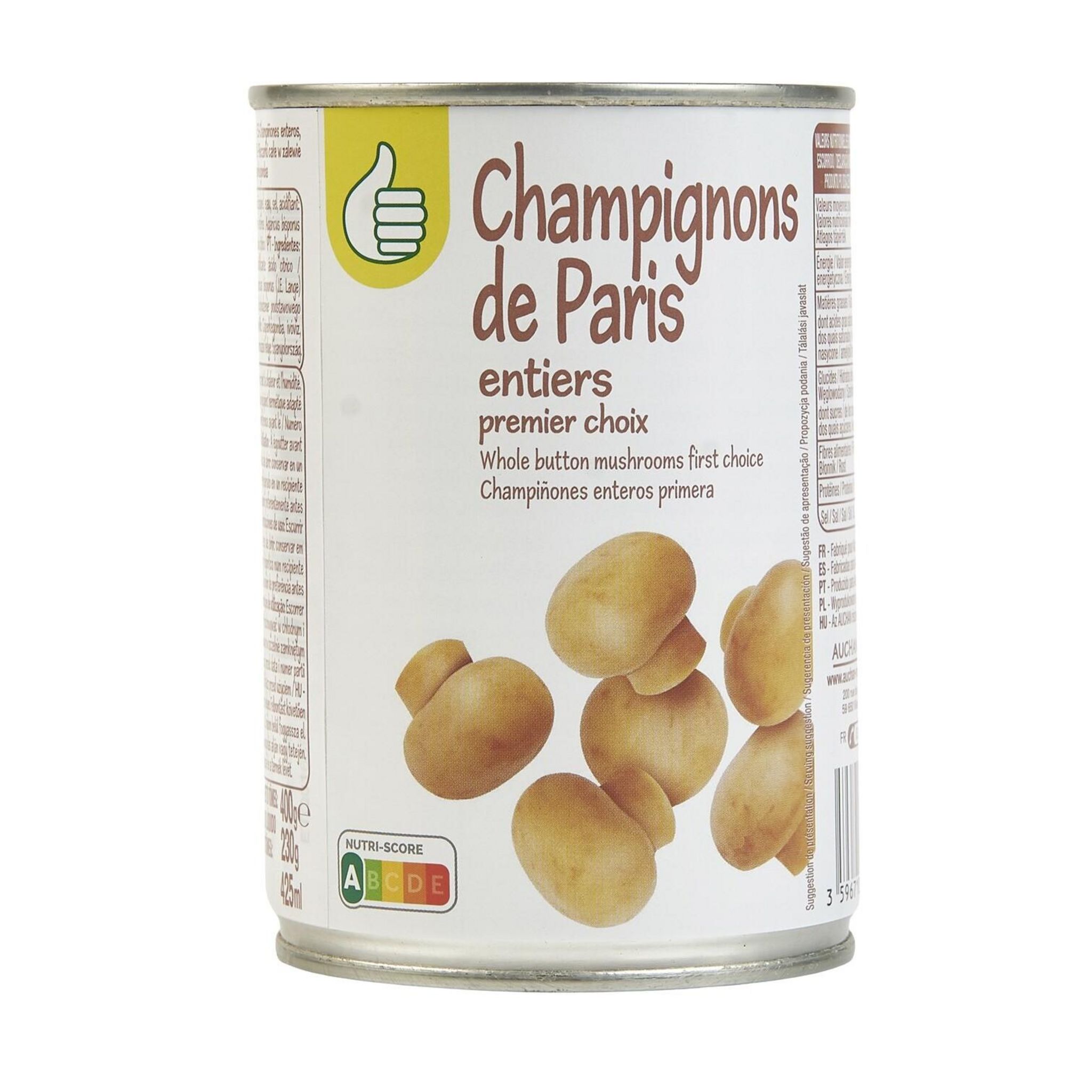 Champignons de Paris entiers au naturel 1er choix