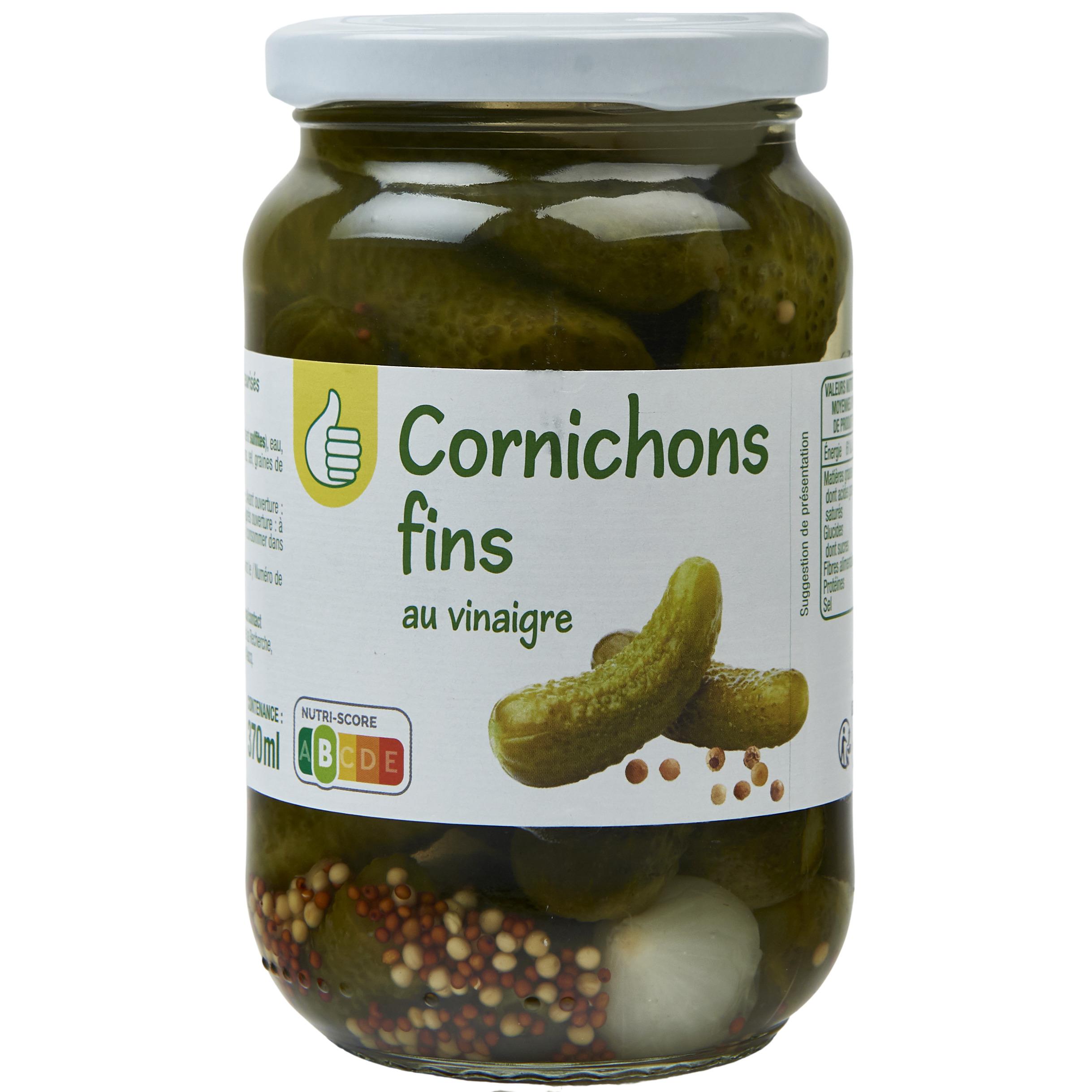 Ingrédients : Cornichons (contient SULFITES), eau, vinaigre d'alcool 4,5%, oignons, sel, graines de MOUTARDE, arôme naturel.