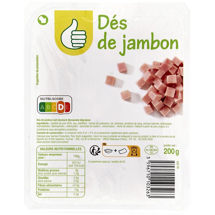 Dès de jambon cuit découennés et dégraissés