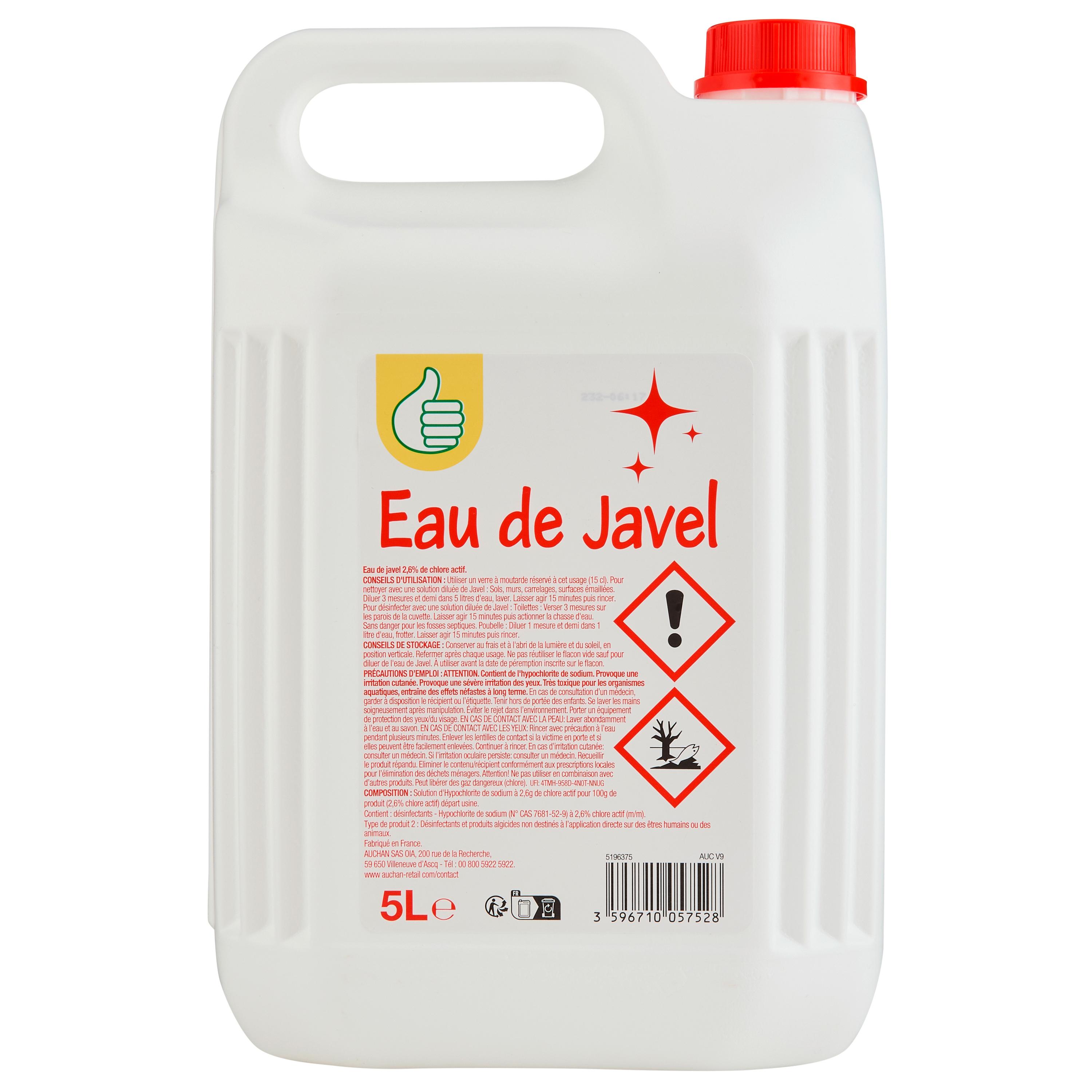 Conseils d'utilisation Utiliser un verre à moutarde réservé à cet usage (15cl). Pour nettoyer avec une solution diluée de Javel: Sols, murs, carrelages, surfaces émaillées. Diluer 3 mesures et demi dans 5L d'eau, laver. Laisser agir 15 minutes puis rincer. Pour désinfecter avec une solution diluée de Javel:Toilettes: Verser 3 mesures sur les parois de la cuvette. Laisser agir 15 minutes puis actionner la chasse d'eau. Sans danger pour les fosses septiques.Poubelle: Diluer 1 mesure et demi dans 1 litre d'eau, frotter. Laisser agir 15 minutes puis rincer.