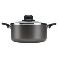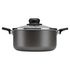 Faitout aluminium 22 cm avec couvercle en verre, couleur noir. Compatible tous feux dont induction, avec revêtement antiadhésif en aluminium. Poignée fixe pour une manipulation aisée.
