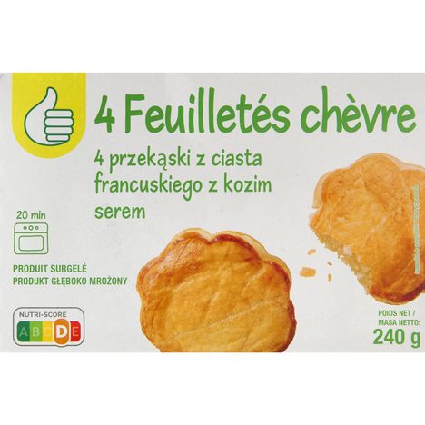 Pâte feuilletée crue garnie de caillé de chèvre et de chèvre fondu - surgelée