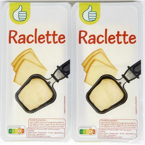 Raclette au lait pasteurisé, en tranches.