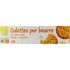 Ingrédients : Farine de blé, sucre, beurre pâtissier 13,7% (soit 16,5% en beurre reconstitué) (lait), amidon de blé, jaune d'œufs, sel poudres à lever : carbonates d'ammonium, diphosphates, carbonates de sodium. Traces éventuelles de soja.Elaboré à partir de lait origine UE ou hors UE.