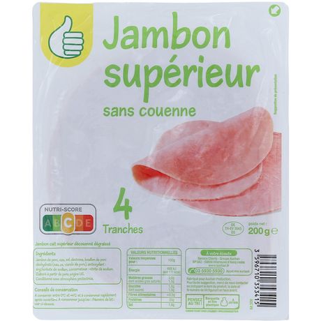 Jambon cuit de qualité supérieure, découenné et dégraissé, issu de Porc origine UE