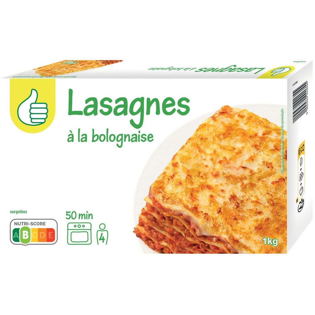 Eau, semoule de blé dur (contient gluten ), viande bovine crue 10%, concentré de tomates, préparation pour béchamel (lactosérum (contient lait ) , amidon modifié de pomme de terre, farine de froment (contient gluten ) prégélatinisée, matière grasse laitière (contient lait), sel, épices (muscade, poivre), stabilisant : gomme xanthane, stabilisant : pyrophosphates, épaississant : alginate de sodium, sucre), carotte, emmental (contient lait ), préparation aromatisante pour béchamel (farine de blé (contient gluten ), lactosérum en poudre (contient lait ), lait riche en matière grasse en poudre et lait écrémé en poudre, sel, épice, huile de tournesol), amidon modifié de maïs, céleri , oignon, vin blanc, huile de tournesol, sel, sucre, tomates concassées (tomates, jus de tomates, acidifiant : acide citrique, affermissant : chlorure de calcium), ail, fibre végétale (contient gluten ), basilic, œuf entier en poudre, arôme naturel, sauge. Traces éventuelles de poisson, crustacés, mollusques, soja, moutarde, fruits à coques et sésame. Elaboré à partir de viande bovine et de lait origine UE.