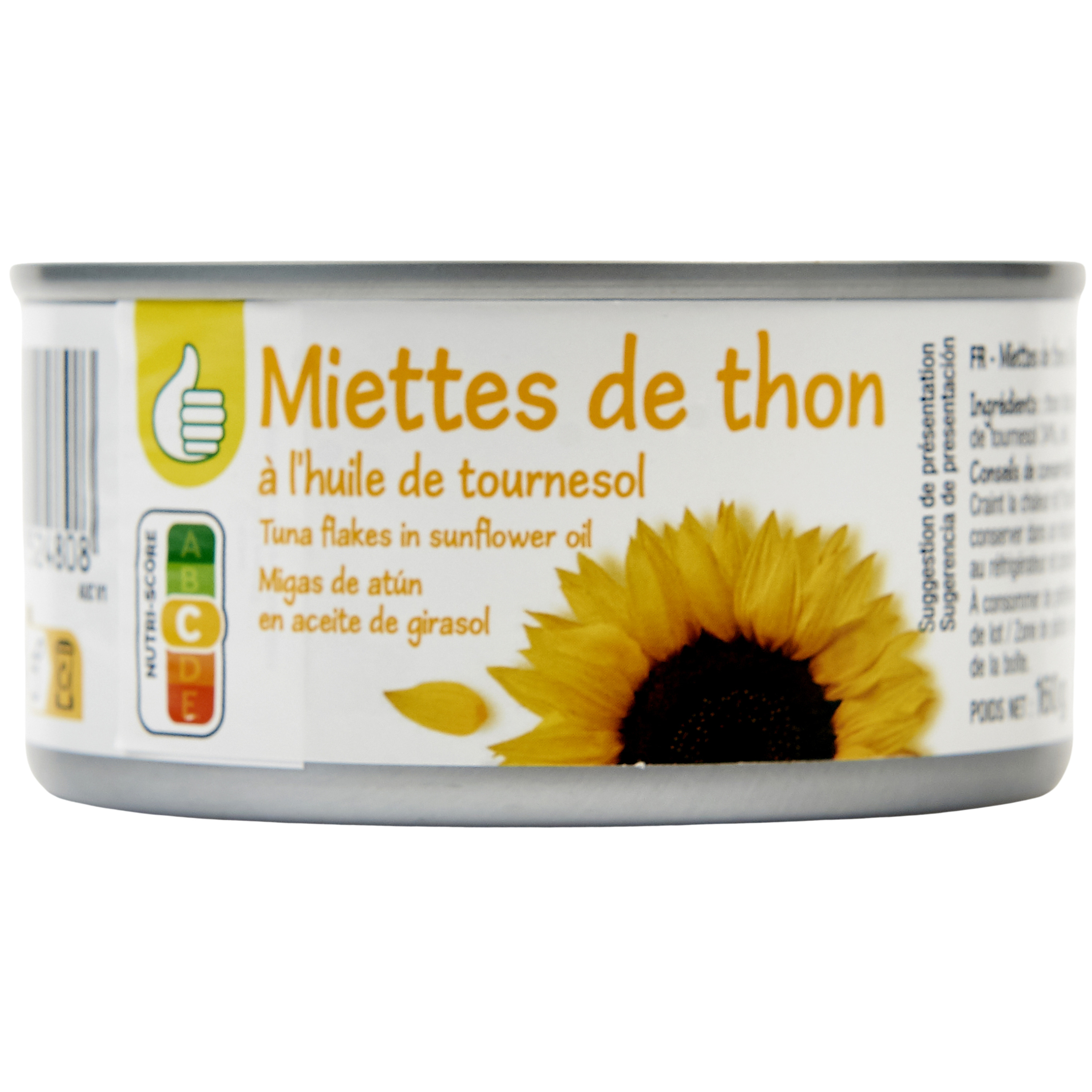 Ingrédients : thon listao (POISSON), huile de tournesol 34%, sel.