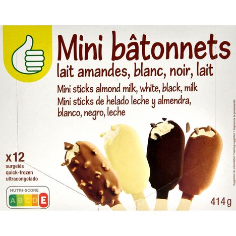 12 Bâtonnets de glace aux 4 chocolats très bons. Prix très intéressant. Je recommanderai
