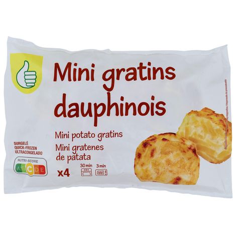 au four:Sans décongélation préalablePréchauffer le four à 180°C. Ôter le film plastique et déposer les mini gratins sur une feuille de cuisson et laisser cuire 30 minutes..au micro-ondes:Sans décongélation préalableÔter le film plastique et faire chauffer au micro ondes 3 minutes, puissance 900W (pour 1 mini gratin)Laisser reposer 1 minute avant de consommer.