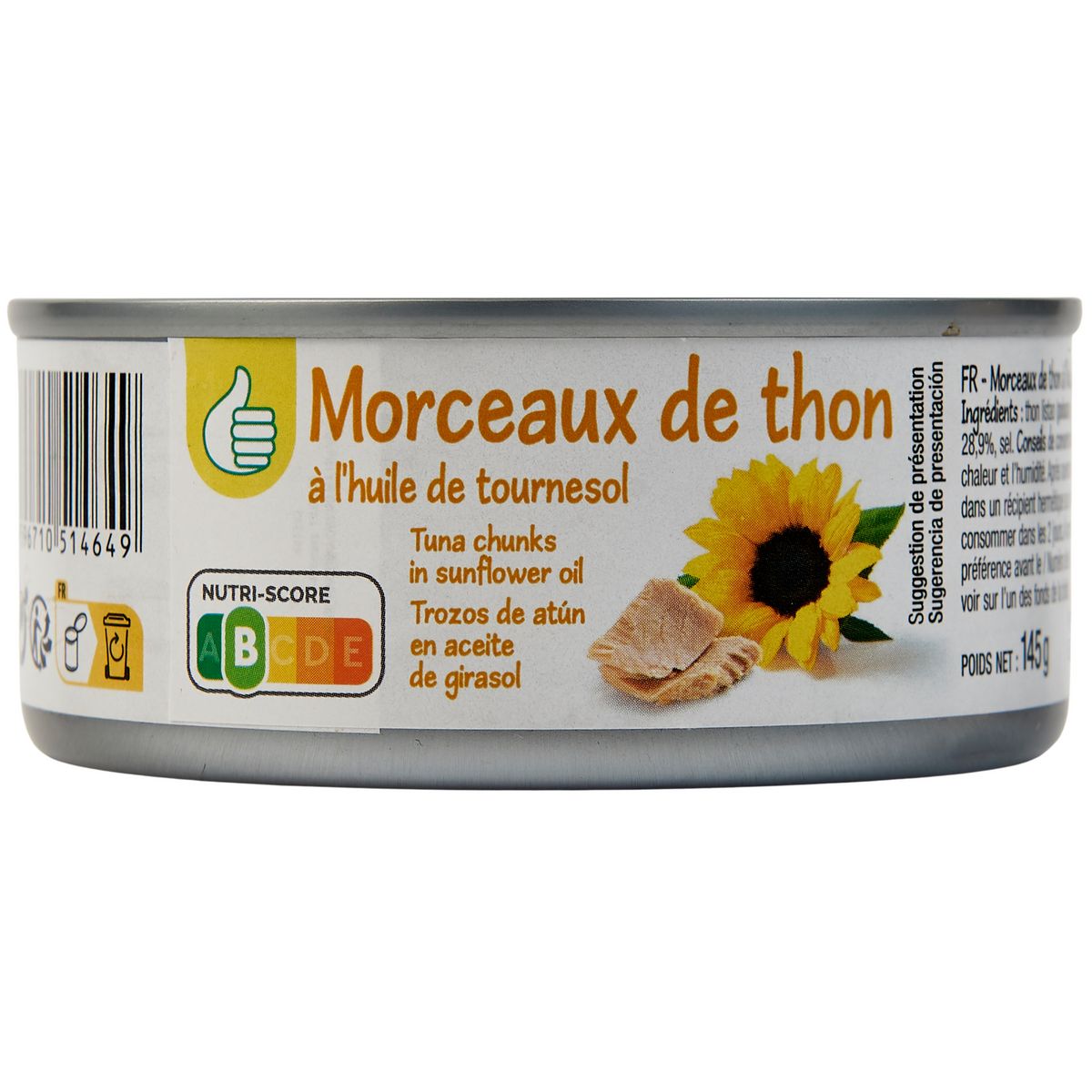 Ingrédients : thon listao (POISSON), huile de tournesol 28.9%, sel.