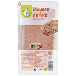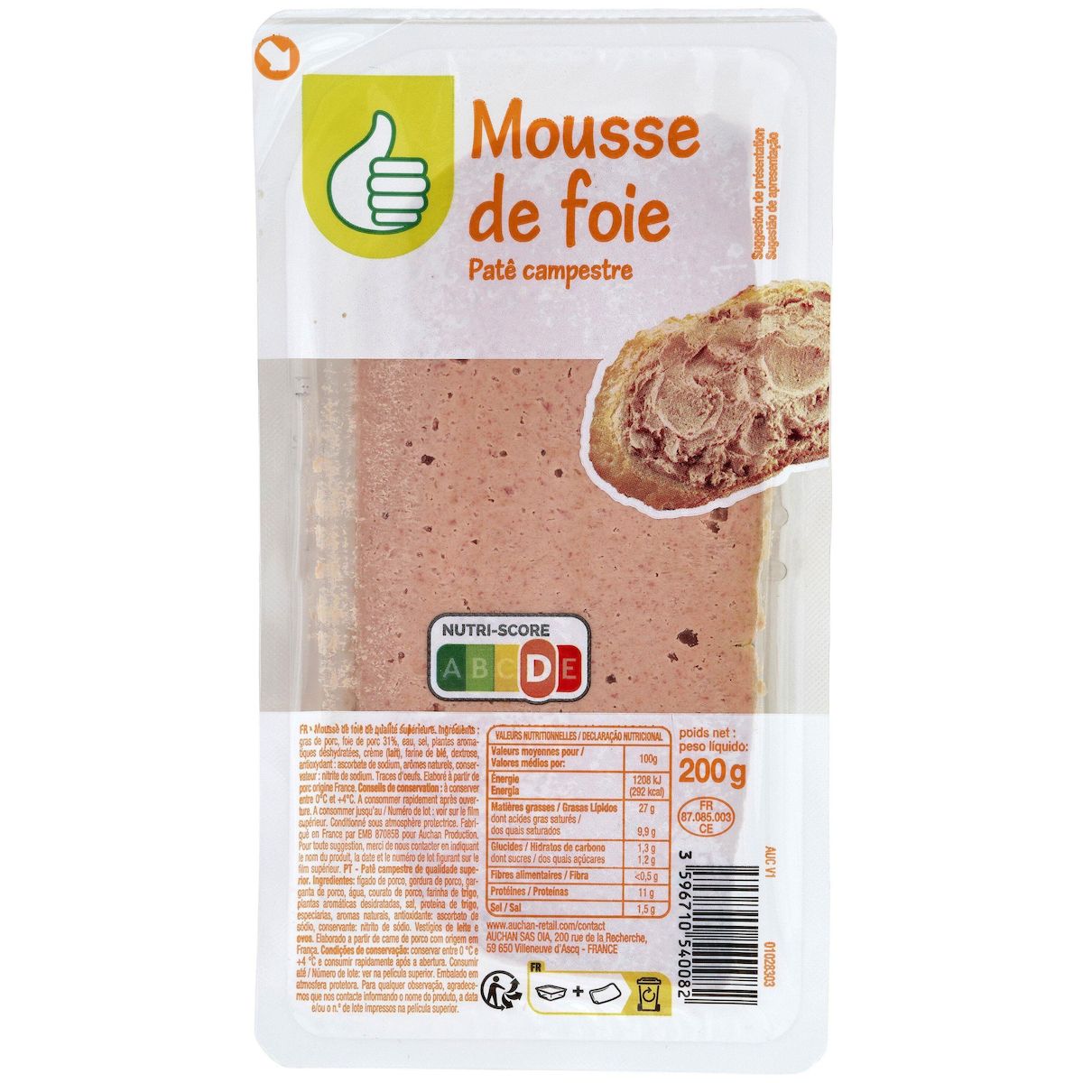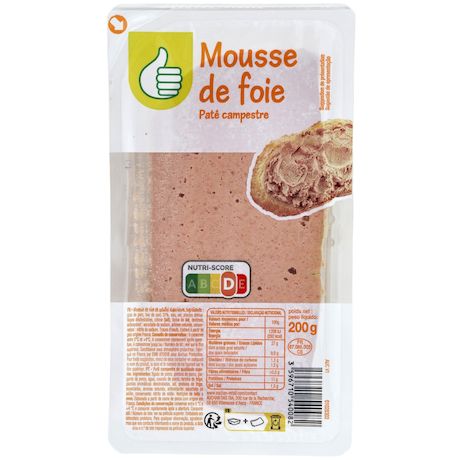Ingrédients : Gras de porc, foie de porc 31%, eau, sel, plantes aromatiques déshydratées, crème (LAIT), farine de BLÉ, dextrose, antioxydant : ascorbate de sodium, arômes naturels, conservateur : nitrite de sodium. Traces d'oeufs. Elaboré à partir de porc origine France.