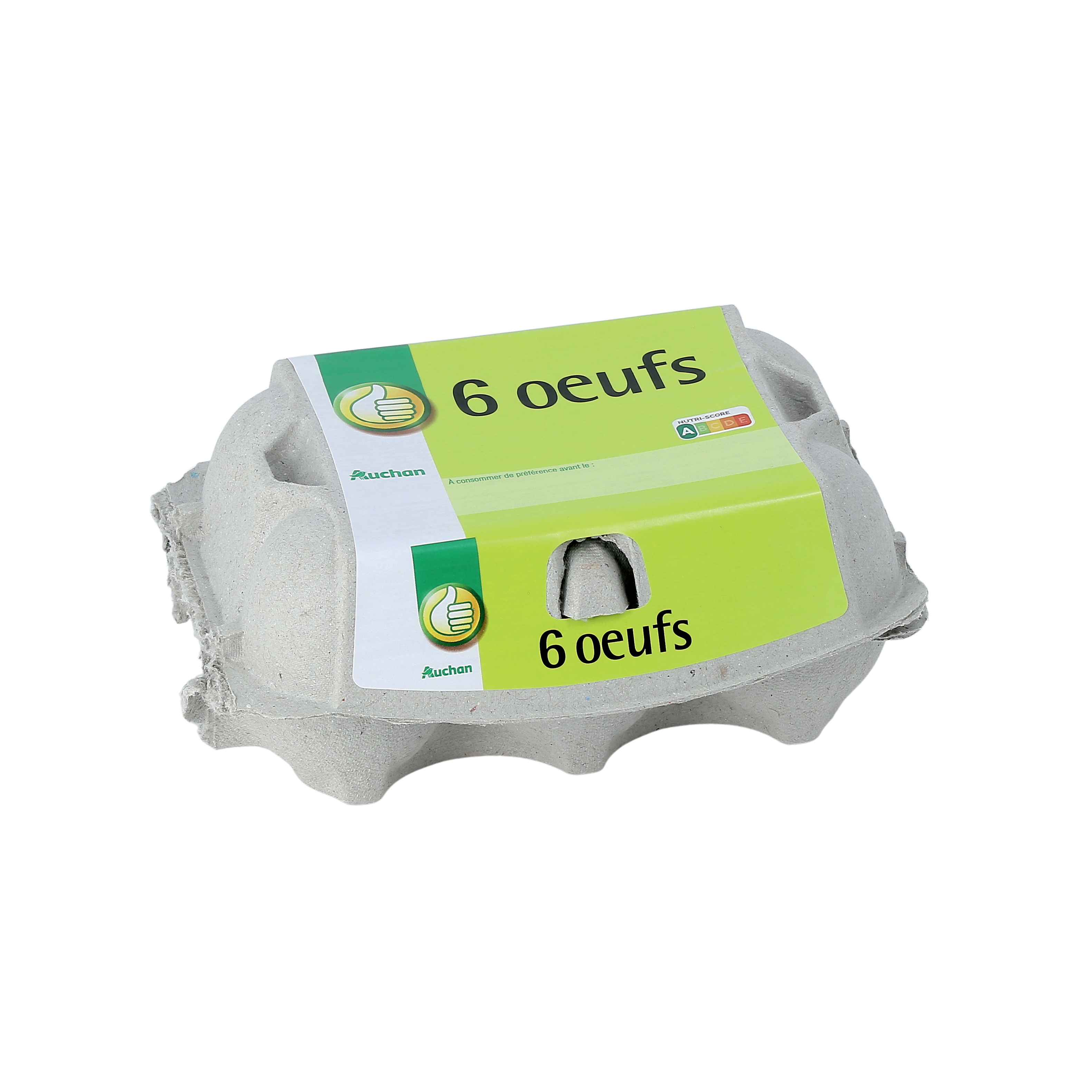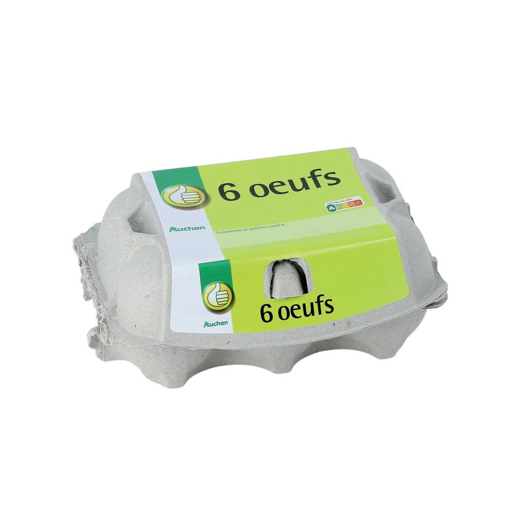 6 œufs frais de catégorie A, œufs de poules élevées en cage (code commençant par 3 sur l’œuf), Calibre Moyen ou Gros.