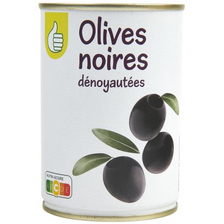 Olives noires dénoyautées, stérilisées. Catégorie : selecta