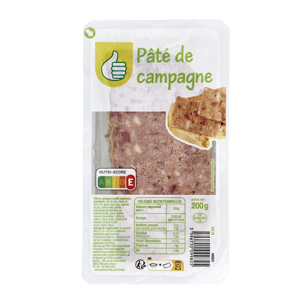 Ingrédients : Foie de porc, viande de porc 24%, gras de porc, eau, couenne de porc, farine de BLÉ, plantes aromatiques déshydratées, sel, protéines de BLÉ, épices, arômes naturels, conservateur : nitrite de sodium. Traces de lait, d'œufs et de moutarde. Elaboré à partir de porc origine France.