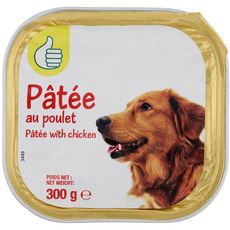 patée au poulet pour chien est un aliment complet composé de viandes et sous produits d'animaux dont 4% de poulet