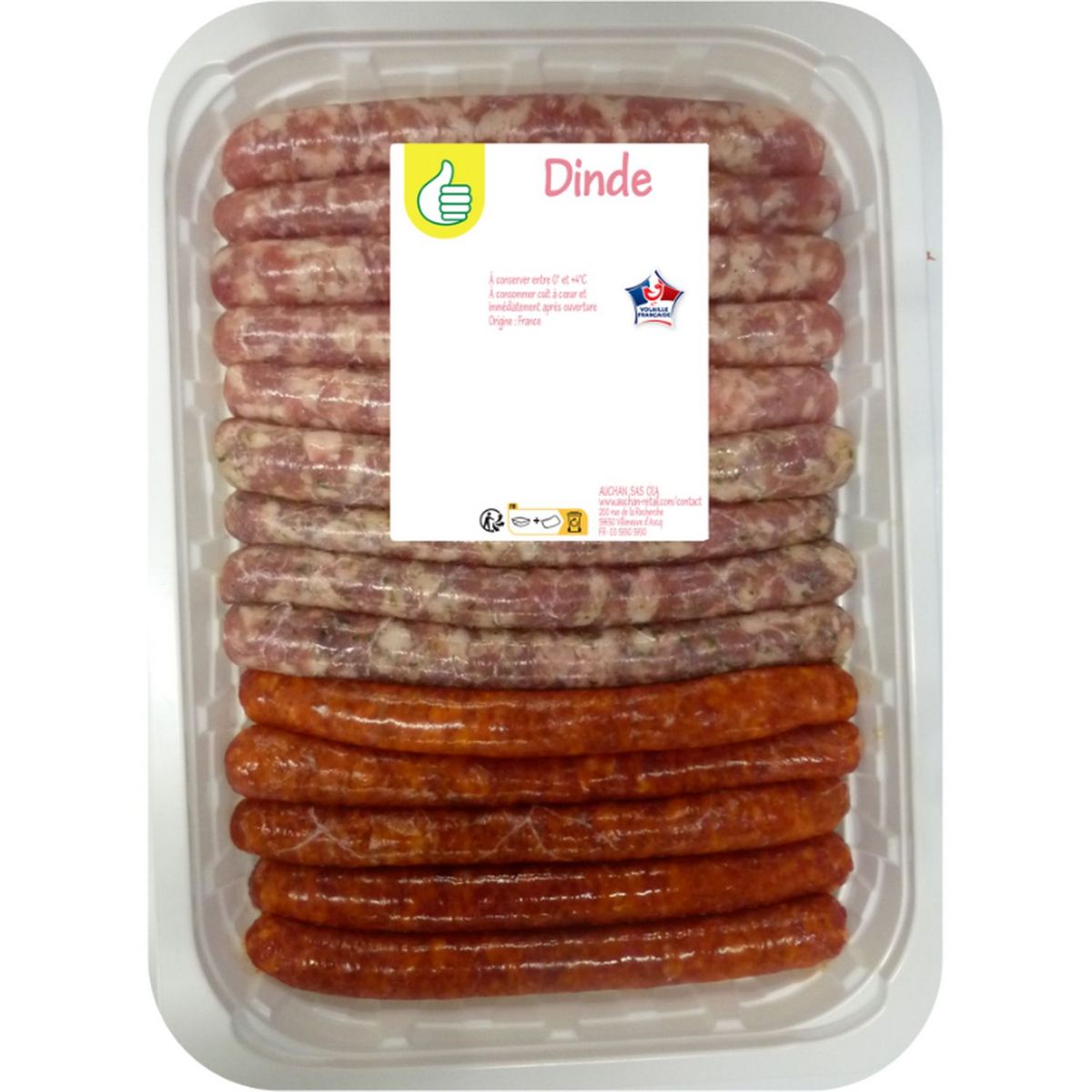 Plateau assortiment de saucisses de dinde nature, herbes et merguez
