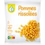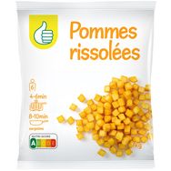 à la friteuse:Sans décongélation préalable. Ce produit doit être cuit avant consommation. Préchauffer l'huile de la friteuse à 175°C. Remplir le panier à moitié. Plonger les pommes rissolées dans l'huile chaude et laisser frire 3 à 4minutes jusqu'à obtention d'une belle couleur jaune dorée. Egoutter les pommes rissolées puis les disposer dans un plat recouvert d'un papier absorbant. Eliminer l'excès de matière grasse et servir. .à la poêle:Sans décongélation préalable. Ce produit doit être cuit avant consommation. Chauffer un peu d'huile ou une noisette de beurre dans une poêle. Ajouter la quantité souhaitée de pommes rissolées. Laisser dorer à feu doux pendant 8 à 10 minutes en mélangeant très régulièrement..Airfryer:Faire cuire à 180°C pendant 9 à 11 minutes, les remuer à mi-cuisson.