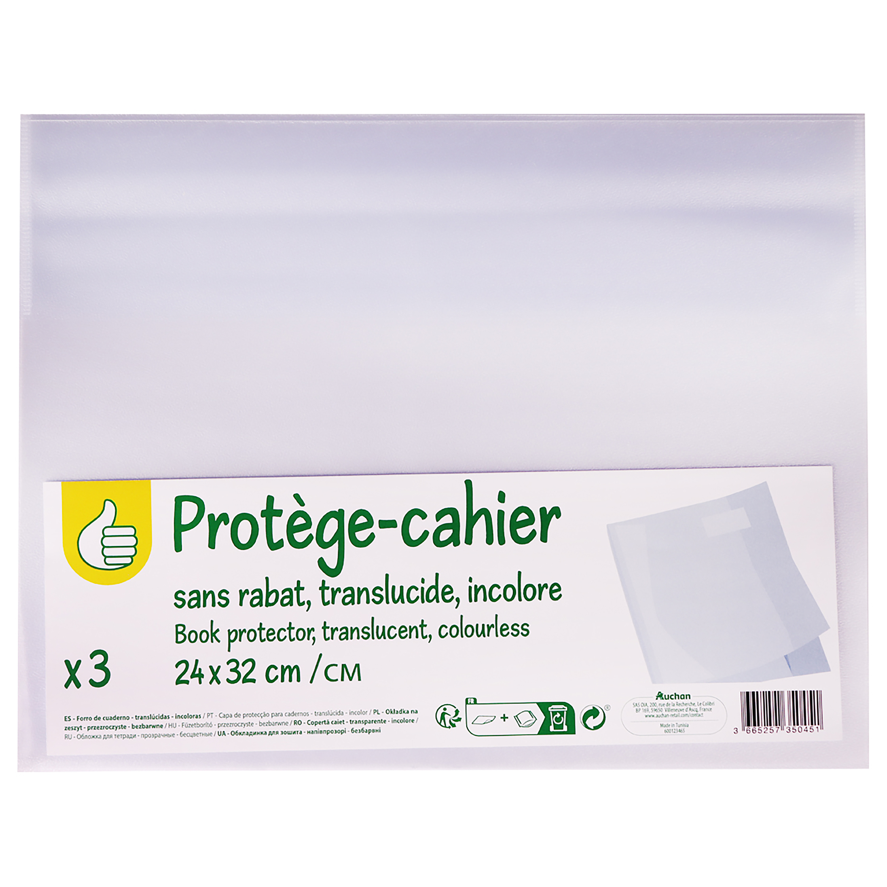 Protège-Cahier 24×32 cm, incolore X3
