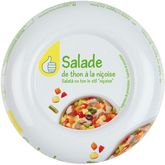 Ingrédients : Thon listao (poisson) 20%, eau, pommes de terre 17%, tomates 10%, haricots verts 9%, carottes 6%, poivrons 5%, oignons 5%, vinaigre de vin rouge (contient sulfites), vin blanc (contient sulfites), vinaigre d'alcool, sel, amidon modifié de maïs, olives noires 0,5% (olives noires, sel), huile de colza, arômes naturels, épaississants : gomme guar, gomme xanthane piment fort, basilic, cannelle.