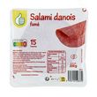 Saucisson pur porc à pâte fortement colorée et à grains fins, poussé sous boyau de grand diamètre, étuvé et fumé. Le produit est prétranché (20 tranches empilées et conditionnées sous atmosphère protectrice dans une barquette thermoformée avec un film d'operculage).
