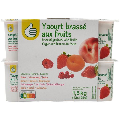 Yaourt brassé sucré aux fruits (fraise, abricot, pêche, fruits rouges), aromatisé