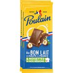 POULAIN LAIT NOISETTES 2X95G Chocolat au lait extra-fin aux éclats de noisettes.