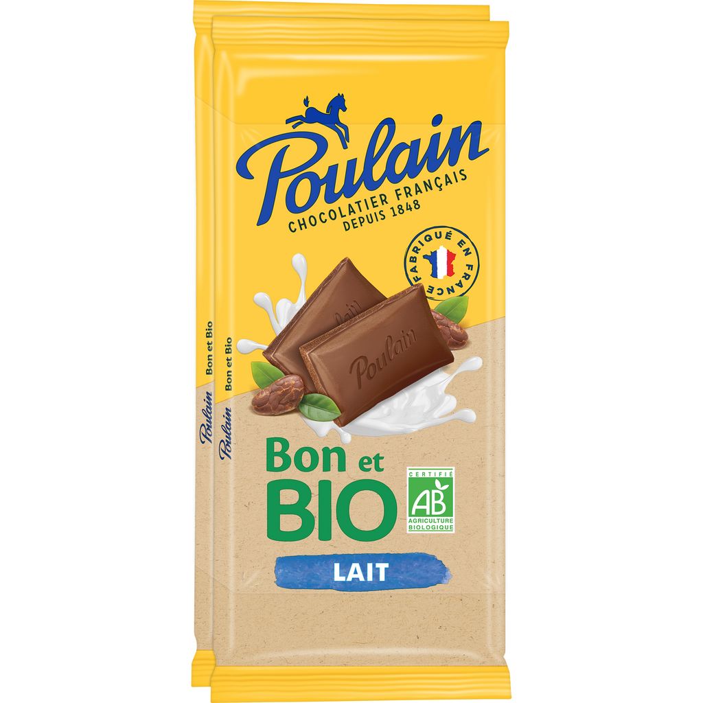 POULAIN LAIT BIO 2X85G Chocolat au lait issu de l’agriculture biologique.
