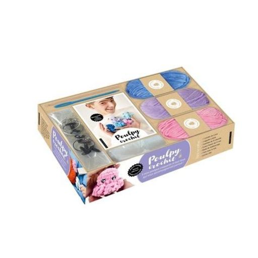 POULPY CROCHET. COFFRET AVEC 1 CROCHET DE 4MM, 1 AIGUILLE A LAINE, 3 PELOTES DE FIL CHENILLE, 6 YEUX KAWAII DE 12 MM, OUATE DE REMBOURRAGE, 1 LIVRE ET 3 PORTE-CLES, Edoucrochet