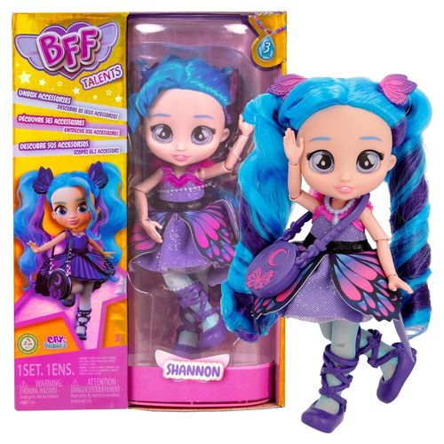 Découvrez la toute nouvelle poupée BFF de la Série 3, Shannon ! Votre personnage favori de Cry Babies Magic Tears a bien grandi pour devenir une adolescente. Shannon est dotée de magnifiques yeux, d'un corps articulé et de superbes cheveux bleus de 15 cm de long. Préparez-vous à créer d'incroyables coiffures !