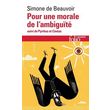Les hommes d'aujourd'hui semblent ressentir plus vivement que jamais le paradoxe de leur condition. Ils se reconnaissent pour la fin suprême à laquelle doit se subordonner toute action : mais les exigences de l'action les acculent à se traiter les uns les autres comme des instruments ou des obstacles : des moyens [...] Chacun d'entre eux a sur les lèvres le goût incomparable de sa propre vie, et cependant chacun se sent plus insignifiant qu'un insecte au sein de l'immense collectivité dont les limites se confondent avec celles de la terre , à aucune époque peut-être ils n'ont manifesté avec plus d'éclat leur grandeur, à aucune époque cette grandeur n'a été si atrocement bafouée. Malgré tant de mensonges têtus, à chaque instant, en toute occasion, la vérité se fait jour : la vérité de la vie et de la mort, de ma solitude et de ma liaison au monde, de ma liberté et de ma servitude, de l'insignifiance et de la souveraine importance de chaque homme et de tous les hommes [...] Puisque nous ne réussissons pas à la fuir, essayons donc de regarder en face la vérité. Essayons d'assumer notre fondamentale ambiguïté. C'est dans la connaissance des conditions authentiques de notre vie qu'il nous faut puiser la force de vivre et des raisons d'agir. S.d.B.