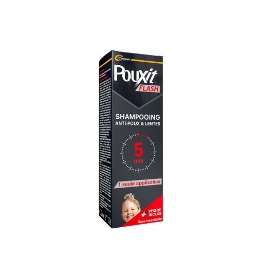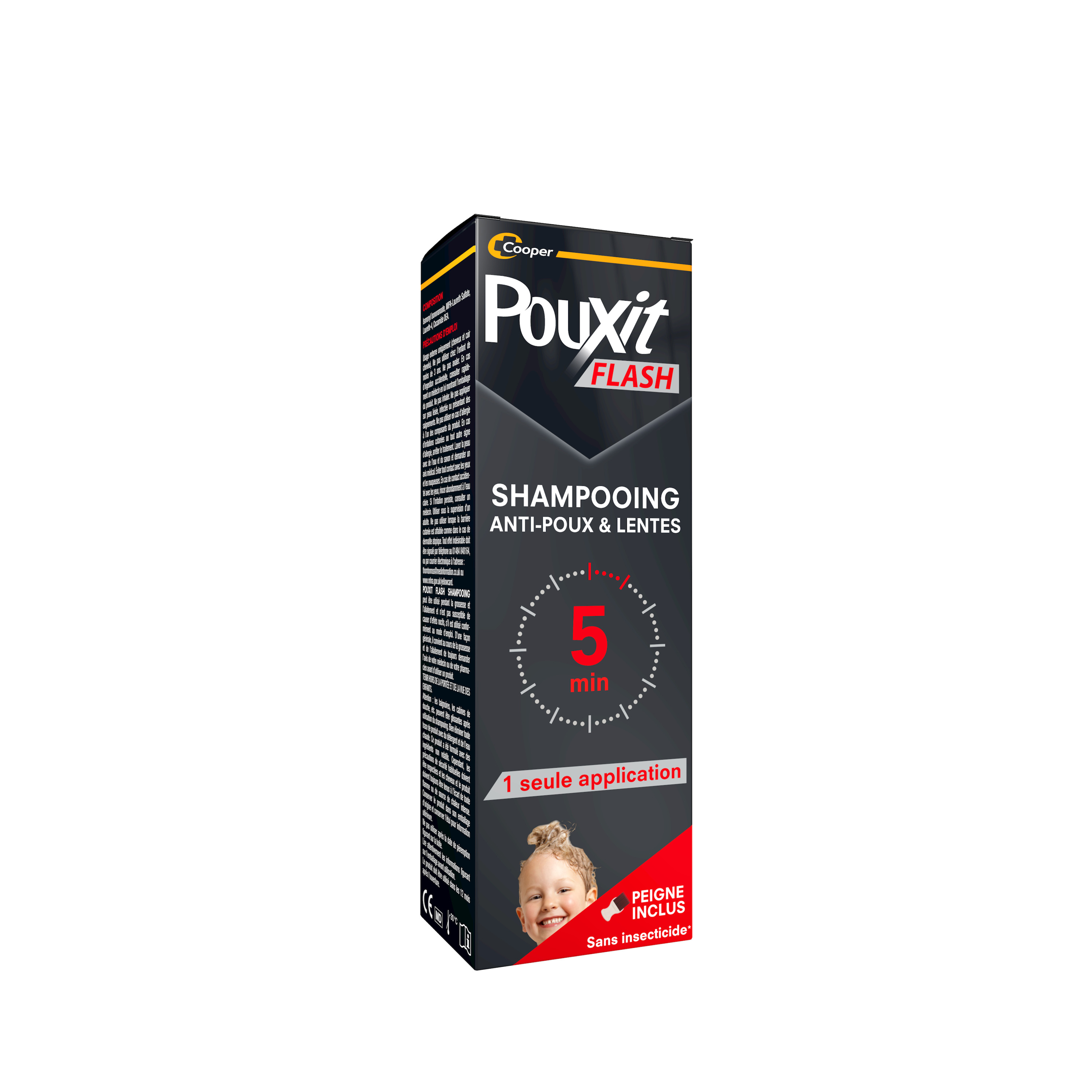 DITES ADIEU AUX POUX EN 5 MINUTES AVEC UN PRODUIT 2-EN-1 : Pouxit Flash Shampooing est un traitement sans insecticide (2) qui tue rapidement les poux et les lentes (1) par action mécanique et qui nettoie les cheveux grâce à ses propriétés lavantes et moussantes. Pouxit Flash Shampooing peut s’utiliser dès l’âge de 3 ans ainsi que chez les femmes enceintes ou allaitantes. Il convient à tous les types de cheveux. 1 flacon de 100 ml permet de traiter jusqu’à 4 personnes infestées.