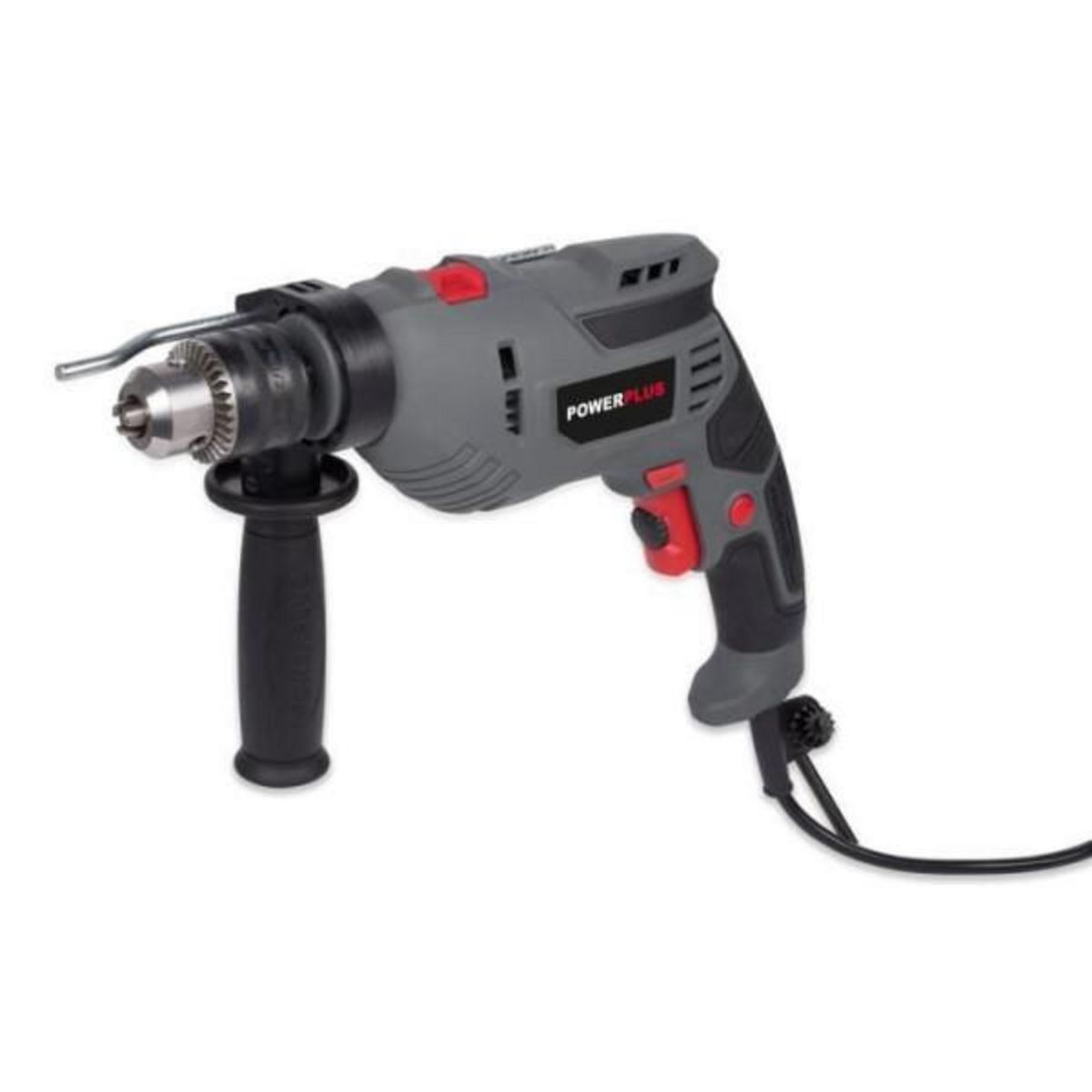 En savoir +La perceuse a percussion POWERPLUS POWE10025 est équipée d'un moteur de 600 W avec démarrage progressif et d'un mandrin SANOU a Clé 13mm. Elle dispose également d'un indicateur LED, d'une poignée auxiliaire ajustable et d'une butée de profondeur.