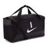 Le sac de sport Nike Academy Duffle Black allie durabilité et fonctionnalité grâce à son polyester résistant. Son compartiment principal zippé offre un espace généreux pour ballons, équipements et accessoires, tandis que les multiples poches intérieures et extérieures garantissent un rangement méthodique.