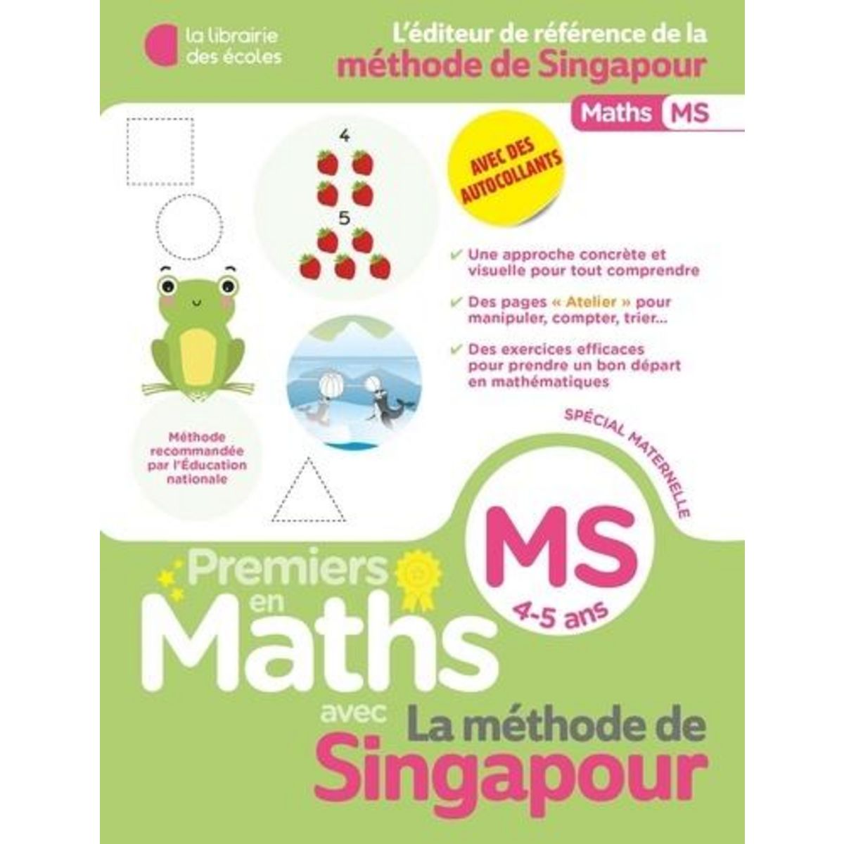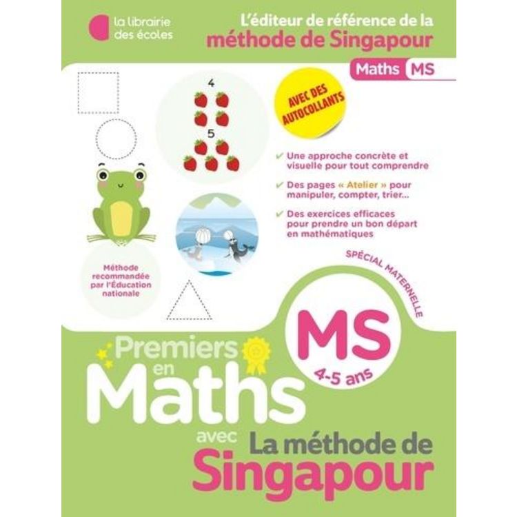 Adoptez la méthode qui forme les meilleurs élèves du monde en mathématiques ! Une approche concrète des nombres, mis en scène dans des situations du quotidien, et des autocollants pour permettre à l'enfant de manipuler des outils et des quantités. Une étude approfondie et progressive de chaque notion du programme. Des exercices variés qui encouragent l'observation, la discussion et le raisonnement. Des activités systématiques de graphisme et de dénombrement .