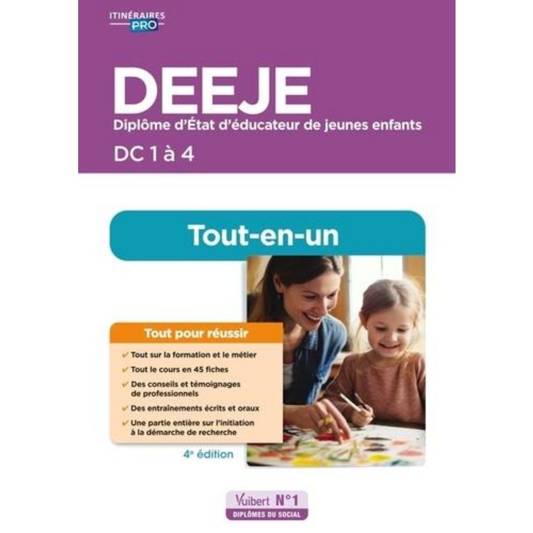 Un livre complet pour réussir sa formation. Toutes les informations utiles à propos de la formation, du diplôme et du métier. L'ensemble des connaissances et savoir-faire pour maitriser les étapes clés de la professionnalisation en 45 fiches. Des témoignages d'étudiants et de professionnels. Des entraînements et des conseils méthodologiques prenant en compte les enjeux des épreuves de certification. Les 4 domaines de formation : DC 1 : Accueil et accompagnement du jeune enfant et de sa famille , DC 2 : Action éducative en direction du jeune enfant , DC 3 : Travail en équipe pluriprofessionnelle et communication professionnelle , DC 4 : Dynamiques interinstitutionnel les, partenariats et réseaux.